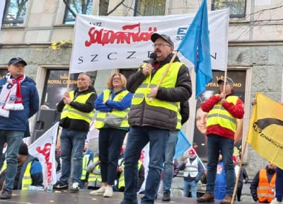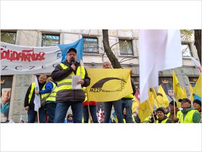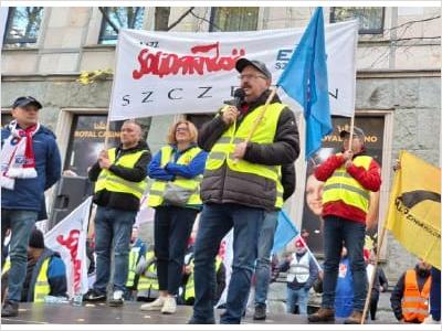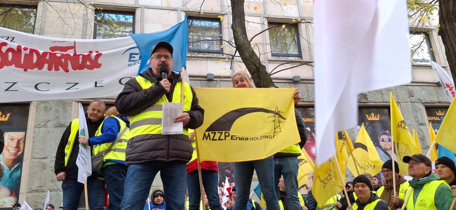 Pikieta niezadowolenia związków zawodowych w GK ENEA pod siedzibą MAP w Warszawie 14.10.2025 r.