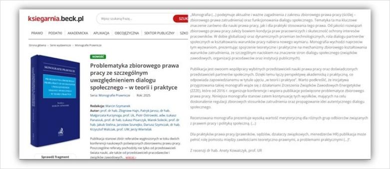 Monografia Prawnicza - Problematyka zbiorowego prawa pracy ze szczególnym uwzględnieniem dialogu społecznego – w teorii i praktyce.